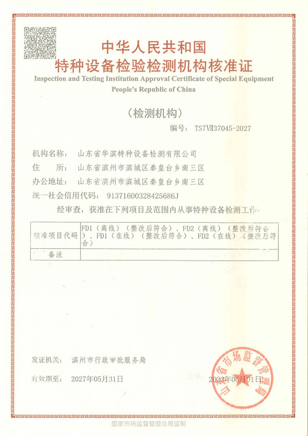 華濱檢測(cè)下設(shè)山東省華濱特種設(shè)備檢測(cè)有限公司、山東省華濱計(jì)量檢測(cè)有限公司。